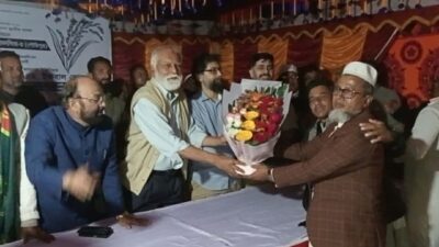 গৌরীপুরে ধানের শীষের মনোনীত প্রার্থী ইঞ্জিনিয়ার এম ইকবাল হোসেইনকে ফুলেল শুভেচ্ছা