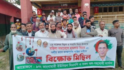 ময়মনসিংহের গৌরীপুরে জাতীয় বিপ্লব ও সংহতি দিবস উপলক্ষে আয়োজিত নারী সমাবেশে হামলার বিচার ও ঘটনার দলীয় তদন্তপূর্বক শাস্তির দাবিতে বৃহস্পতিবার (২০ নভেম্বর/২৫) উপজেলার ভাংনামারী ইউনিয়ন বিএনপি ও সহযোগী সংগঠনের ব্যানাে ................বিস্তারিত সংবাদ