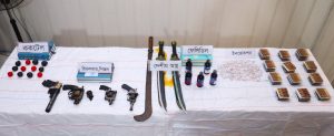 ময়মনসিংহে গোয়েন্দা পুলিশের (ডিবি) অভিযানে বিপুল পরিমাণ অস্ত্র ও মাদকদ্রব্য উদ্ধার করা হয়েছে। এ সময় দুইজনকে গ্রেফতার করে পুলিশ। উদ্ধারকৃত আগ্নেয়াস্ত্রের একটি পিস্তল, ৩টি রিভলবার, ৪৭ টি ককটেল, ৩টি ধারালো অস্ত্র, ২৭৯ নেশাজাতীয় ইনজেকশন ও ৫ বোতল ফেন্সিডিল রয়েছে। দায়ের করে আসামীদ্বয়কে বিজ্ঞ আদালতে সোপর্দ্দ করা হয়েছে।